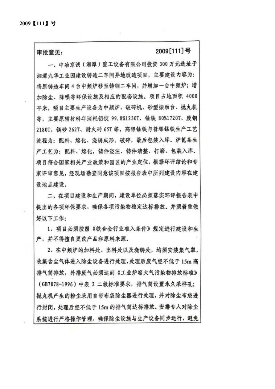 建设项目环境影响报告表(中冶京诚(湘潭)重工设备有限公司新增年产7750tt炉篦条改扩建项目3.13报批稿)